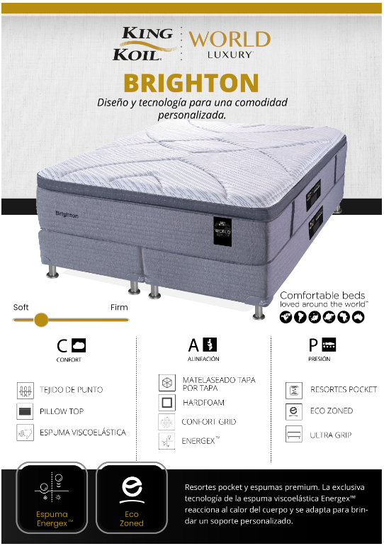 Conjunto Col. de resortes King Koil Brighton + Som WL Tejido punto 140x190